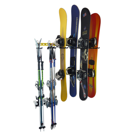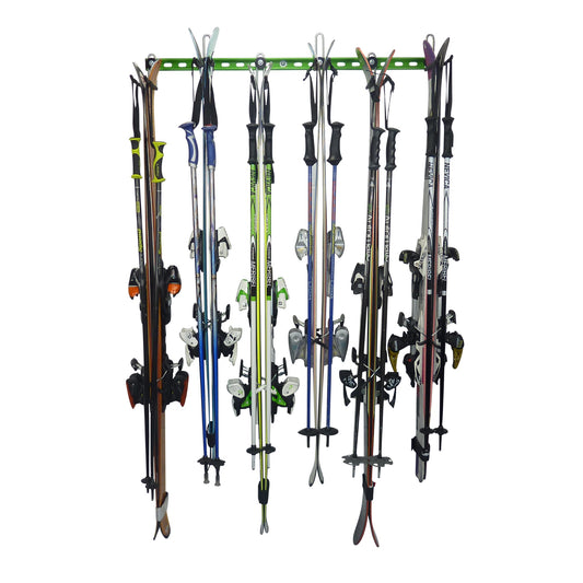 We have four meters of rack holding 6 pairs of skis, three bikes, a golf bag, and helmets. It has transformed the order in our ski room, making more space, at a very low cost. I do recommend these racks. I like the way that the company stopped me buying the white ones (because they mark) and my black ones look great. The delivery to Switzerland was easy and seamless.
